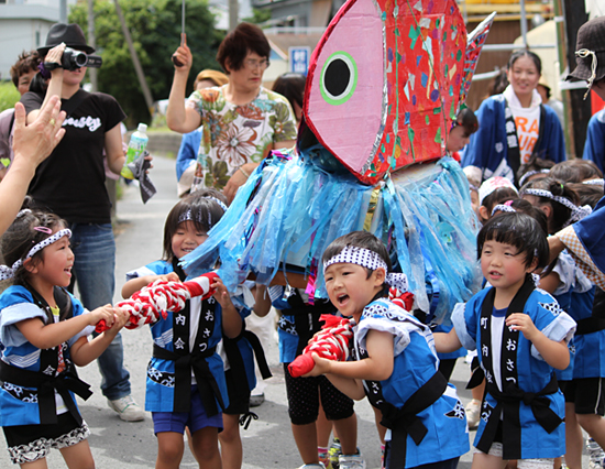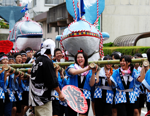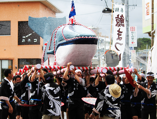 威勢よく町内を練り歩くクジラみこし