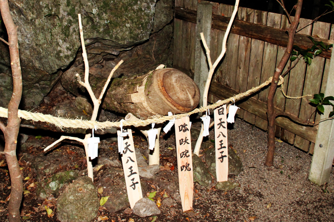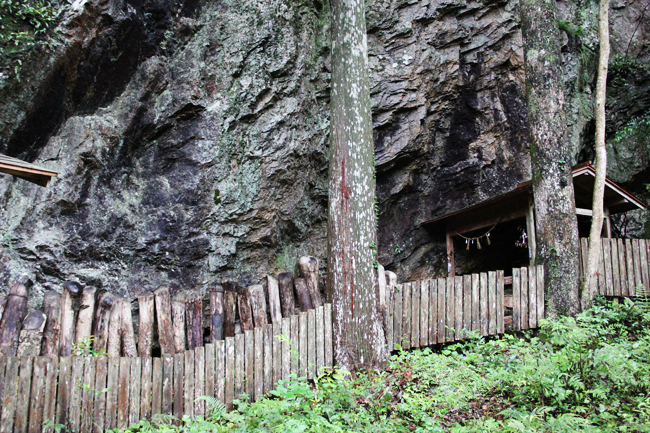 山の神さんの祠は岩壁の下にあり、横には合歓の木で作られた男根が列を並んで供えられている。山の神は一般に女神であるとされ、繁殖能力が強い神と言われる。農民や山民にとって山の神の実体は祖霊であると言われ、正月にやってくる年神も山の神と同一視される。そして山は農耕に欠かせない水の源であるということや、豊饒をもたらす神が遠くからやってくるという来訪神の信仰があり、山民にとっての産土神でもある。