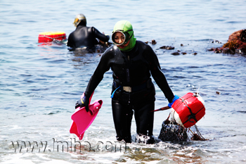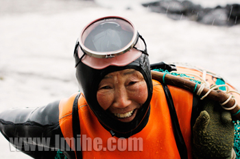 海女礼賛写真展では2010年から今年(2015)4月まで、伊勢志摩を中心に撮った海女の祭りと生業、志摩の海女撮影会、房総半島の南端で行われる白浜海女まつり、岩手県久慈市の北限の海女フェスティバル、そして韓国済州島の海女(ヘニョ)など、計30枚を配しました。