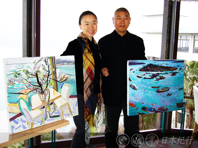 2月4日〜7日まで中国の著名画家、清華大学副教授の忻東旺(49)、中国人民大学の教授、王克挙(56)と妻の閆平(56)が鳥羽市内のホテル(鳥羽シーサイドホテル)で宿泊し、観光の傍ら創作活動に励んだ。