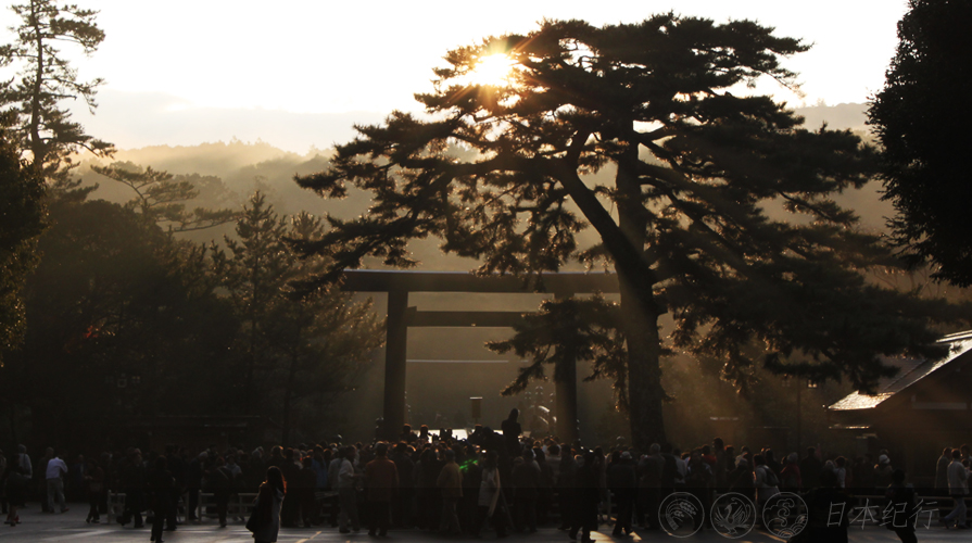 三重县的伊势神宫做为日本天皇祖先的庙宇和日本民族的精神故乡,每年有多数的祭祀活动吸引着来自全国各地的游客。冬至是一年当中日照最短的一天。古人认为这是阴极之至,阳气始生的吉日,便以祭天的形式来感恩上天。伊势神宫在冬至这一天也保留着冬至节日,人们在天还未明的时候就早早来到伊势神宫的鸟居前朝拜东方升起的太阳。