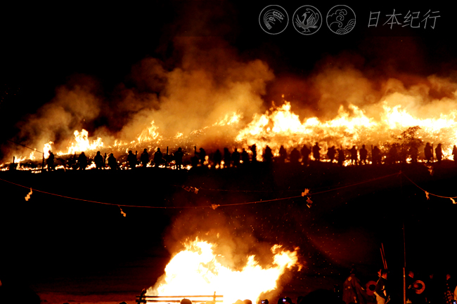 占地面积33万平米的若草山(北京天安门广场是40万平米)为什么要将冬天里的一把火燃烧殆尽呢?一种说法是起因于江户时代邻接的东大寺、兴福寺和春日大社之间的境界之争。其结果是以火来烧掉彼此的界限与隔阂。另外,据有关文献记载,说是附近的农民为了让春天的绿草长得茂盛,以便山上的鹿群和野猪有足够的草食供应。周围的寺社担心野火会烧到自家的门坎,就自发地联合起来将烧山演变为一种新年的仪式来奉行。