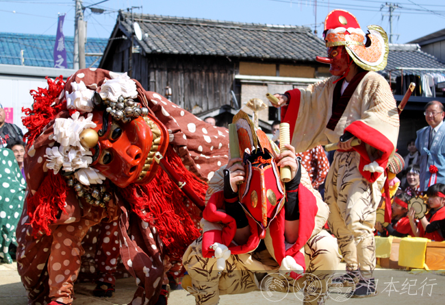 四月,随着樱花季节的到访,三重县鸟羽市也迎来了温暖的春天。四百年前,同样是鸟语花香的日子,鸟羽市的贺多神社和大山祇神社里便开始了奉纳狮子和天狗舞的迎春习俗。时至今日,这个习俗仍完好地保留着。