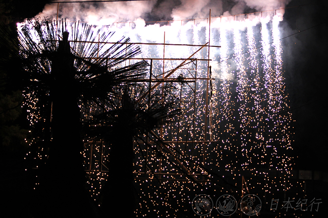 最后,场内的两把火炬被点燃。熊熊燃烧的烈火伴着鼓声和欢呼声将火祭推向高潮。我虽然错过了篠田花火的开场式,却随处感受到动、静、明、暗相互交错的精彩画面。日本人喜欢樱花,也喜欢绚烂夺目的烟花,因为它们都在短暂的生命中释放出最美,一瞬间来又在一瞬间消逝。