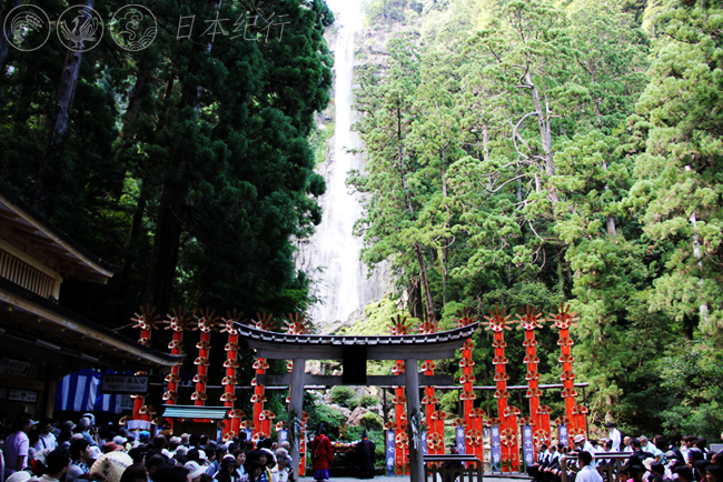 落差133米的那智瀑布是日本第一瀑布,也是熊野那智大社最初的本殿。每年7月14日,在瀑布前举行的那智火祭不仅是日本三大火祭之一,而且是具有1300年历史的水与火的祭典。