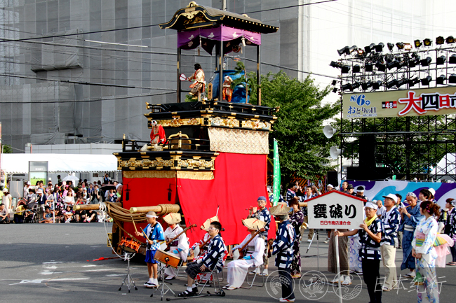 大四日市节上还披露了日本神话故事中的「岩户山」、中国古代故事「司马光砸缸」、日本国指定重要民俗文化财「鲸船」和四日市无形民俗文化财「西日野大念佛」等。晚上又表演了具有地方特色的诹访太鼓。