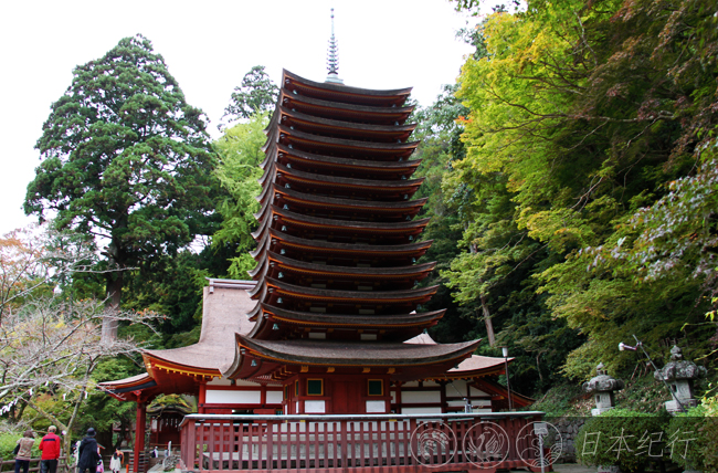 谈山神社位于多武峰的半山腰,周围古树参天,深秋时节在此赏枫是一个绝佳的享受。因为今年秋天有些暖,等枫叶变红看来还得需要几天。谈山神社里安葬着为日本「大化改新」建功立业的藤原镰足的遗骨,这里不仅是反腐刷新「大化改新」的发祥地,也是将1400年前从中国传来日本的蹴鞠文化保留最完好的地方。