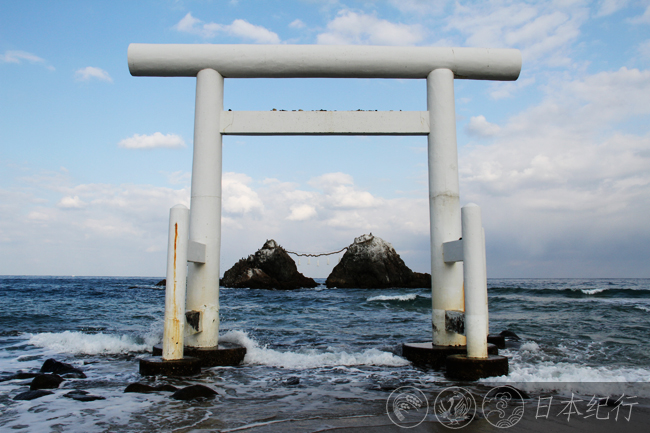 一月的博多湾海岸冷清中带着寒意,放眼望去,就在不远处的浅海中立着一对夫妇岩。三重县伊势湾的夫妇岩在东,是观赏日出的有名景点。而眼前的夫妇岩朝西,据说是适合看日落的好地方。日本人喜欢太阳和大海,总是有意无意地把两者结合在一起,而这二者的结合也是相当绝妙的。