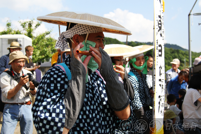 插秧结束后,一位老人将耙倒插在田里,并将三束秧苗放在上面。壬生花田植中的「壬生」是这里的地名,「花田」正如水田中绽放的花朵,「植」就是种植。不管任何国度、任何种族、农民是最辛苦的阶层,可是对美好生活的憧憬却通过各种方式表现了出来,也许这就是草根文化所具有的通性吧。
