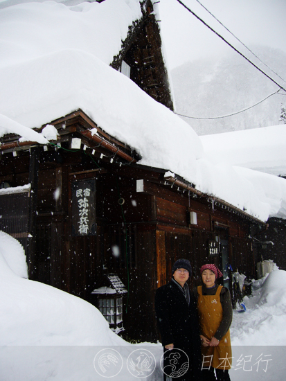 今晚在白川乡和五箇山两处举行合掌村明月灯会,我选择了离这里半个小时车程的富山县上梨村的一家合掌造民宿作为落脚点。这家合掌造民居叫弥次兵衛,据说已有350年的建筑历史。晚宴时,我问老板是这家房主的第几代传人。他说已经记不得了,当地政府的相关人员来考证时也是大致推算的年限。