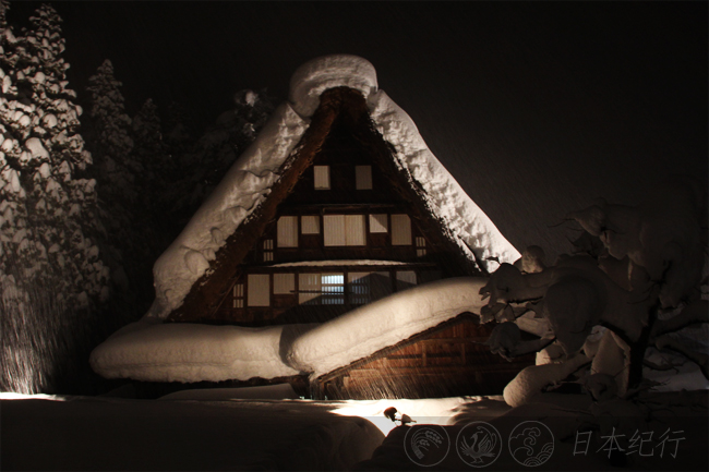 白川乡合掌村和五箇山的明月灯会都是在晚上同一个时间段举行。而五箇山的岩濑家还有古代民谣筑子的表演。出发前,外面依然大雪纷飞,我穿上了老板借给我的滑雪服匆匆地赶往白川乡。