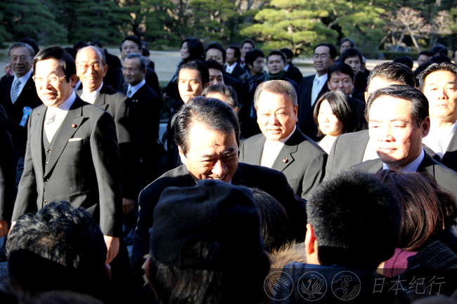 据说菅直人首相在午后3点左右来伊势神宫,我赶紧穿过人流如潮的宇治桥,夹杂在人群之中。大约3点10分,日本首相菅直人一行出现在我们面前。他笑容可掬,亲切地同围观的群众挥手致意。大家不停地高呼着“首相加油!”菅直人从我身边走过,如此近距离地看见一国首相还是头一次。如果不是忙于拍照,还真想冲上前去同日本首相握握手。原来,首相在新年工作开始之前也来参拜伊势神宫。