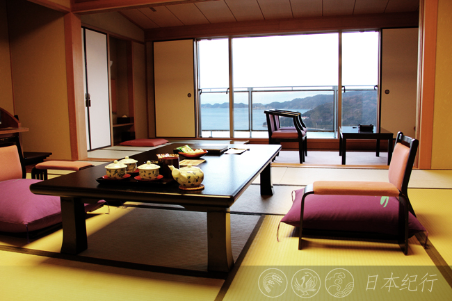 在我的印象中,日本的宾馆大致有这么几种。一种是适合公务、商务的宾馆。这种宾馆价格便宜又狭窄。另一种是欧美风格的洋式酒店,在各国都很普遍。最后一种是日式宾馆(和式)。日式宾馆以榻榻米房间为主,带露天温泉,并配有日式料理。这次我所住的鸟羽海滨温泉酒店就是一家以日式服务为主,充分体现日本文化的温泉旅馆。